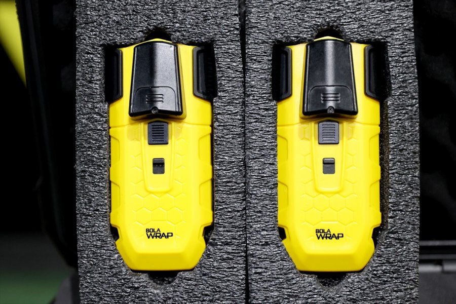 Şüphelileri uzaktan ve temassız etkisiz hale getirebilen "uzaktan kelepçeleme cihazı BolaWrap" Türkiye'ye getirildi.