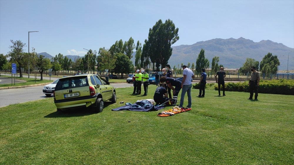 Merve Polat (25) idaresindeki 10 HF 684 plakalı otomobil, Mortaş Kavşağı'nda refüje çarparak devrildi.