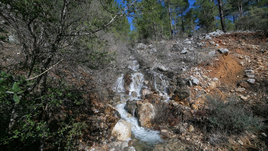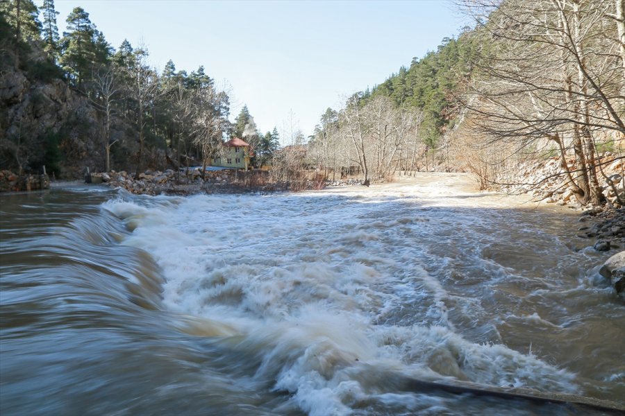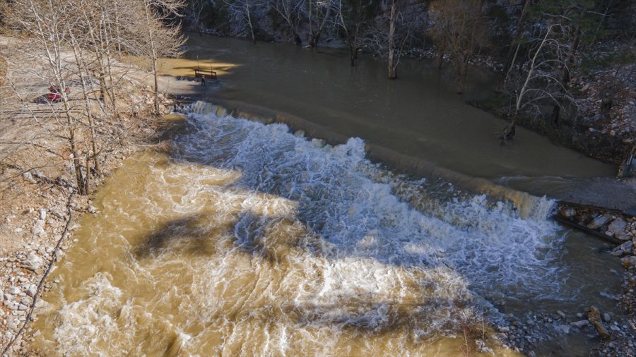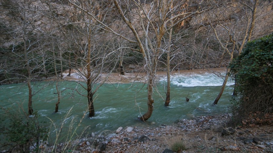 Antalya'nın Akseki ilçesinde sağanak yağışların ardından debisi artan Üzümdere Irmağı, ziyaretçilerini kendisini hayran bırakıyor.