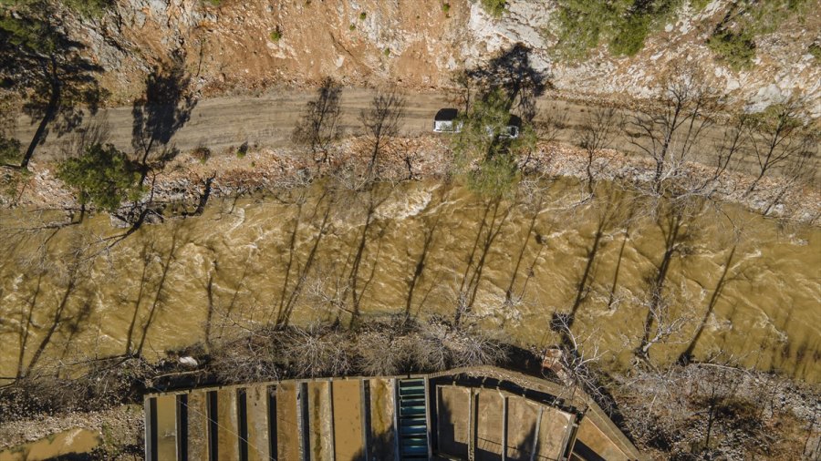 Antalya'nın Akseki ilçesinde yağan yağmurlar Üzümdere Irmağı'nın debisinin artırdı.