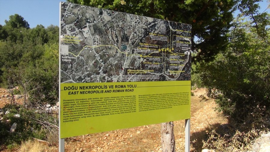 "Bu çalışmalar kapsamında yolu temizledik ve parkur haline getirdik. Uzuncaburç kutsal bir alan olduğu için buraya giden yolların etrafı mezarlık olarak kullanılmış. Bu yolun etrafında da çok sayıda mezar vardı. Biz bunların kazılarını gerçekleştirdik. Çok zengin buluntularıyla 32 mezar açtık. Buralara tabelalarla işaretledik. Yaklaşık 2 kilometrelik bir parkur."