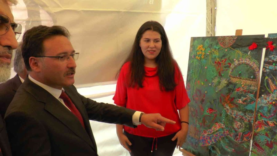 Kayseri'de 15 Temmuz Demokrasi ve Milli Birlik Günü etkinlikleri çerçevesinde Kayseri protokolü şehitliği ziyaret ettikten sonra Erciyes Üniversitesi (ERÜ) Güzel Sanatlar Fakültesi öğrencileri tarafından yapılan eserlerin sergilendiği "Milli İrade Uğruna Türkiye Aşkına" isimli serginin açılışına katıldı.