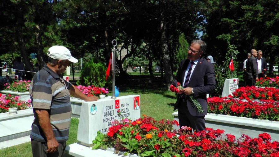Kartal Şehitliği'nde başlayan programa Kayseri Valisi Gökmen Çiçek, Büyükşehir Belediye Başkanı Memduh Büyükkılıç, AK Parti Kayseri Milletvekilleri Taner Yıldız ve İsmail Emrah Karayel, ilçe belediye başkanları, protokol üyeleri, şehit aileleri ve vatandaşlar katıldı. Şehitler için dua edilip protokol üyeleri tarafından şehit kabirlerine karanfil bırakıldıktan sonra, protokol üyeleri Erciyes Üniversitesi Güzel Sanatlar Fakültesi öğrencileri tarafından yapılan eserlerin sergilendiği "Milli İrade Uğruna Türkiye Aşkına" isimli serginin açılışına katıldı.