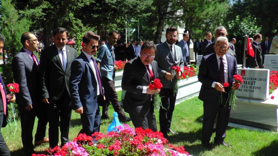 Kayseri'de 15 Temmuz Demokrasi ve Milli Birlik Günü etkinlikleri çerçevesinde Kayseri protokolü şehitliği ziyaret ettikten sonra Erciyes Üniversitesi (ERÜ)...