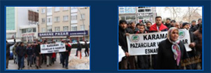Cumartesi pazarı girişinde buluşan pazarcılar dilekçelerini topladıktan sonra sloganlar eşliğinde Karaman Askerlik Şubesi’ne kadar yürüdüler.