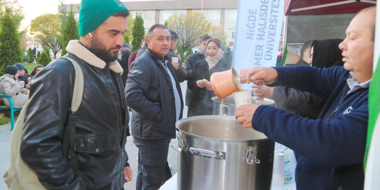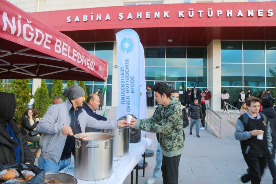Niğde Belediyesi vize haftası boyunca 17.00-19.00 saatleri arasında Sabiha Şahenk Kütüphanesi önündeki çorba pınarından öğrencilere ücretsiz çorba ikram ediyor.