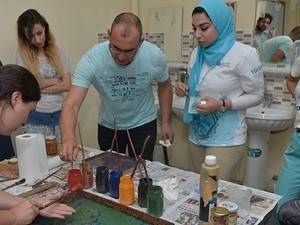 Öğrenciler ilk olarak KMÜ Teknik Bilimler Meslek Yüksekokulu'nda Uzman Gülşen Kahraman eşliğinde sanat atölyesini gezerek çalışmaları incelediler.