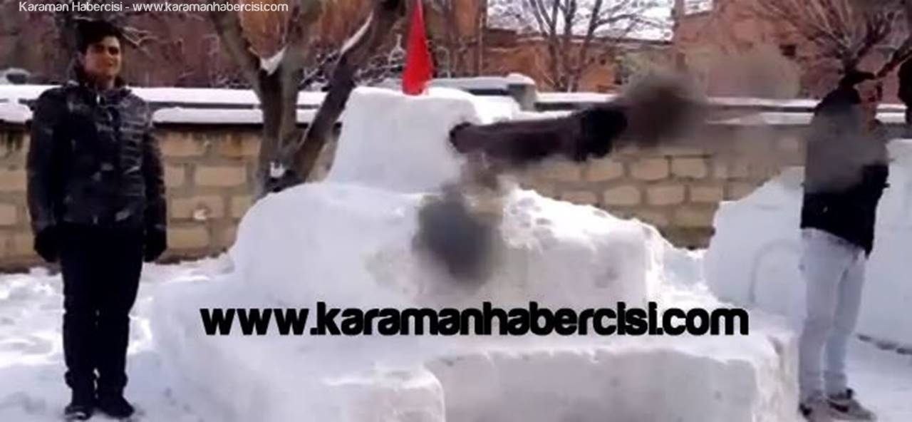 Konya’nın Kulu ilçesinde kardan tank yapıldı