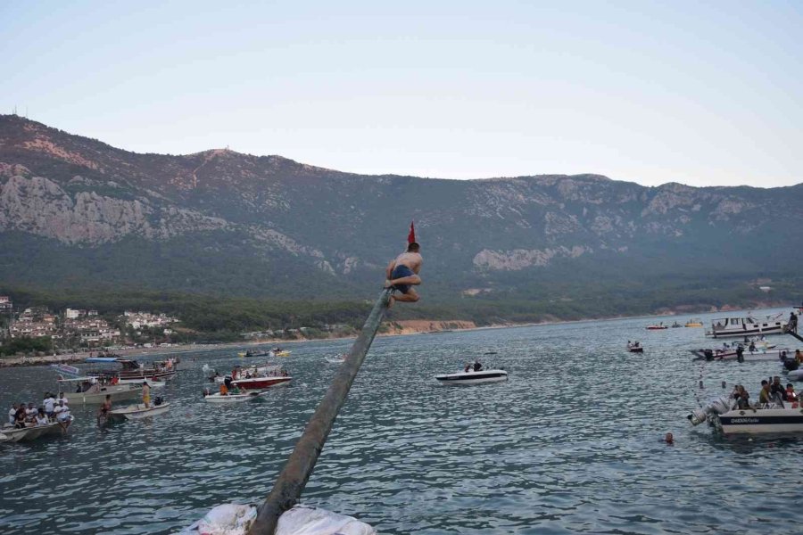 Yağlı Direkten Bayrak Alma Yarışmasında 4 Bin Lira 25 Kişi Ter Döktü