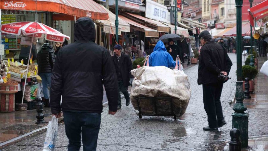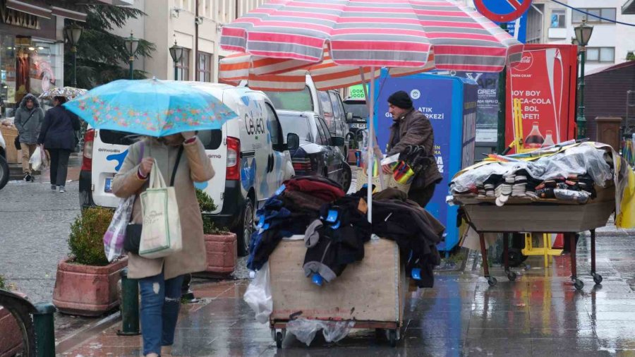 Meteorolojik uyarıları dikkate alarak, tedbirli bir şekilde sokağa çıkan vatandaşlar, şemsiyeleriyle birlikte yağmur altında yürürken, bazı vatandaşların yağmurdan korunmak için bina altlarına sığındığı görüldü.