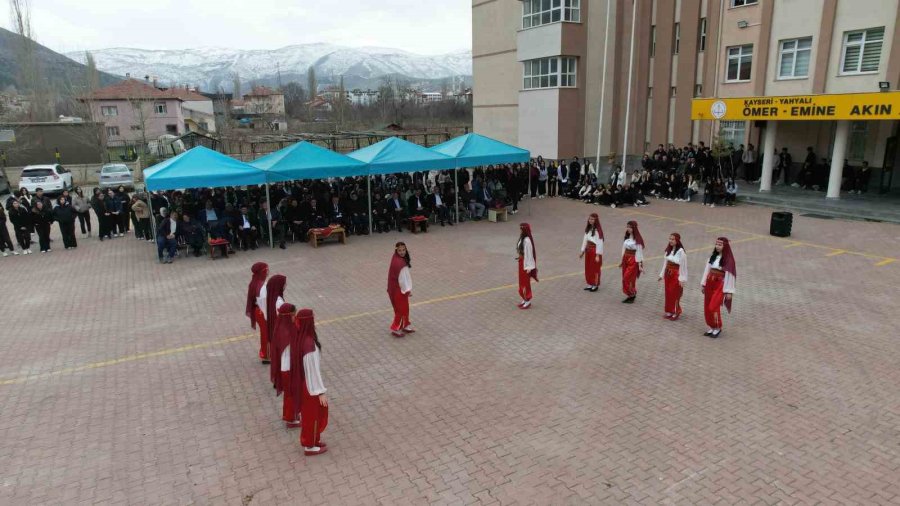 Yahyalı Kaymakamı Mehmet Kaya, Yahyalı Belediye Başkanı Esat Öztürk ve ilçe protokolü, Yahyalı Ömer Emine Akın Anadolu Lisesi'nde düzenlenen Nevruz...