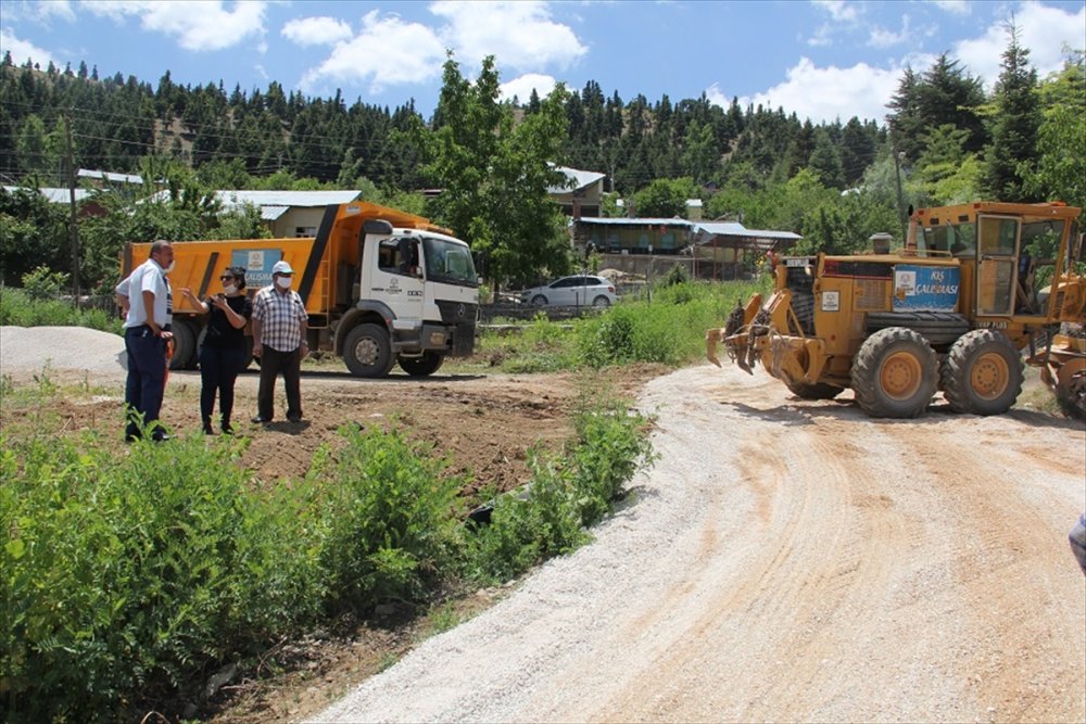 Konya Büyükşehir ve Yalıhüyük Belediyesi ekipleri, Gölcük yayla iç yollarını asfaltla kaplıyor.