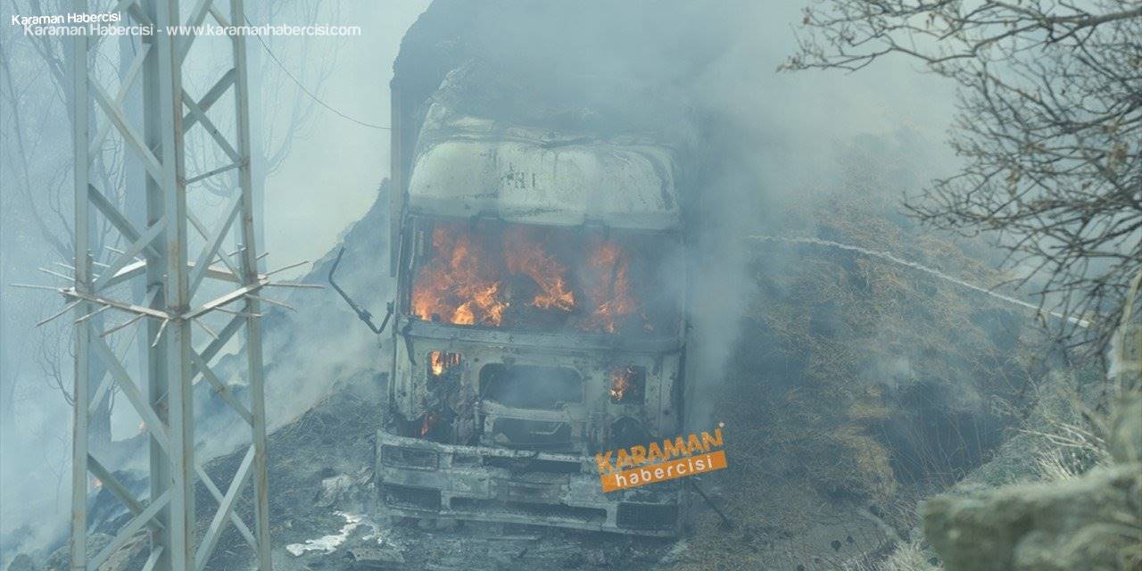 Konya'da Saman Yüklü Tır Yandı