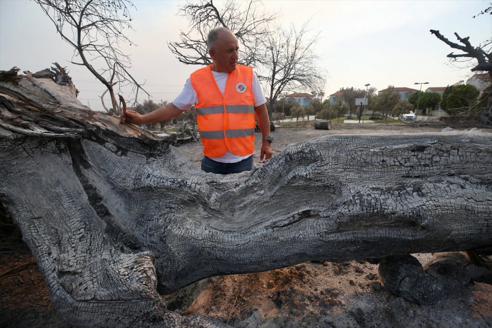 Mert, yangında mahalledeki birçok zeytin ağacının zarar gördüğünü dile getirerek, "Şu anda iki ağacı aldık. İnşallah diğerlerini de alıp sergileyeceğiz." dedi.