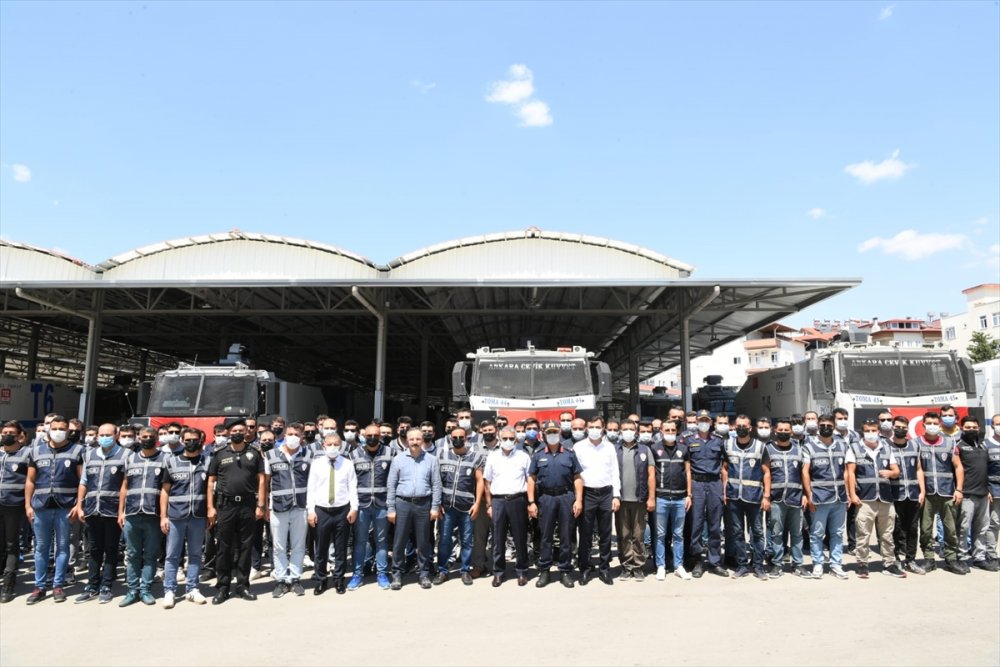 Konuşmaların ardından, söndürme çalışmalarına destek veren emniyet müdürlüklerinden 50 ve jandarma komutanlıklarından 3 TOMA'nın 130 personeli görev yaptıkları illere uğurlandı.