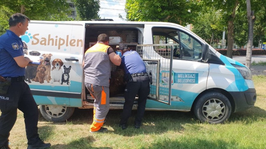 Daha sonra Melikgazi Belediyesi Hayvan Ambulansı'na taşınan keçi, tedavi altına alınmak üzere götürülürken, polis ekiplerinin yaralı hayvana su verdiği anlar da kameralara yansıdı.