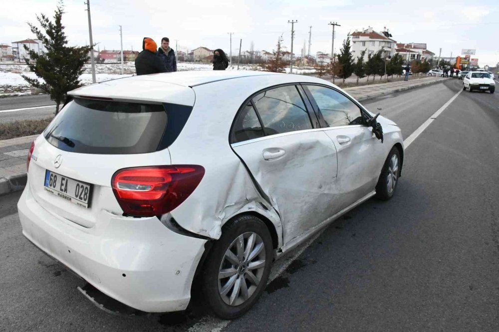 Olay, Nakkaş Mahallesi'nde yaşandı. Edinilen bilgiye göre, plakasız bir motosikletle seyreden 2 genci gören polis ekipleri durumdan şüphelenerek "dur" ihtarında bulundu. Polisin "dur" ihtarına uymayan sürücü ve arkadaşı kaçmaya başladı. Gençlerin kaçması üzerine polis ekipleri motosikleti uzaktan takibe aldı. Bir süre sonra E-90 karayoluna çıkan motosiklet sürücüsü direksiyon hakimiyetini kaybederek Asuman Dereli (45) yönetimindeki 68 EA 028 plakalı otomobile çarptı. Kazada motordan düşen sürücü Burhan Arda A. (17) ve arkasında yolcu olarak bulunan Sami Kerim K. (15) yaralandı. Kazayı gören vatandaşlar durumu hemen sağlık ekiplerine bildirdi. İhbar üzerine olay yerine ambulans sevk edildi. Bir süre sonra gelen 112 Acil Yardım ekipleri yaralı 2 gence ilk müdahaleyi olay yerinde yaptı. Ardından 2 yaralı genç sedyelerle ambulanslara taşınarak Aksaray Üniversitesi Eğitim ve Araştırma Hastanesi Acil Servisine kaldırıldı.