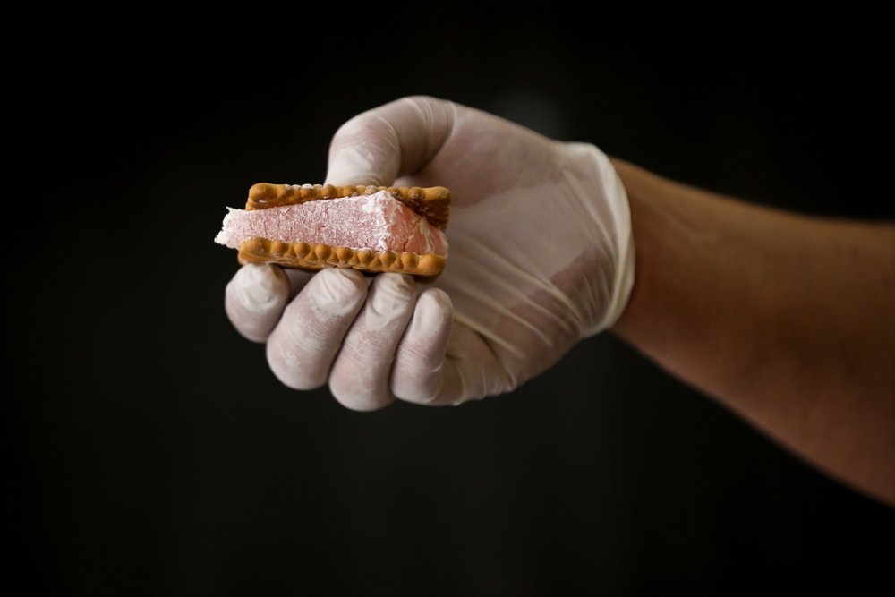 Ürettikleri muska lokumun özel bir yeme şekli olduğunu belirten Bozkurt, iki pötibör arasına lokum konulmasıyla hazırlanan yiyecekle adı özdeşleşen "kıstırma" geleneğinin yıllardır sürdürüldüğünü dile getirdi.