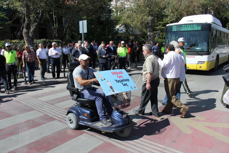 Vali Vekili Hasan Karakaş'ın katılımıyla Anıt Meydanı'ndaki yaya geçidinde düzenlenen programda, ilk ve ortaöğretim öğrencileri ile akülü araç kullanan engelliler, ellerinde "Yaya öncelikli trafik" ve "Öncelik yayanın, öncelik hayatın" yazılı pankartlarla yaya şeridinden geçti.