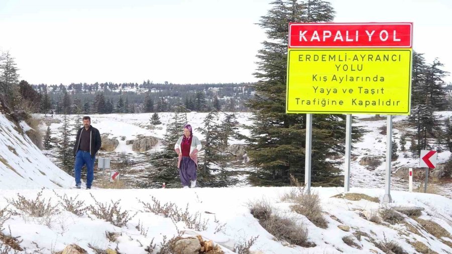 Otomobili karda kalan Yunus Fındık, "Burası Küçükfındık Yaylası, gördüğünüz gibi aracım yolda kaldı. Erdemli Belediyesi ekipleri iş makineleriyle geldi. Sağ olsunlar şu anda yolları açıyorlar" dedi.