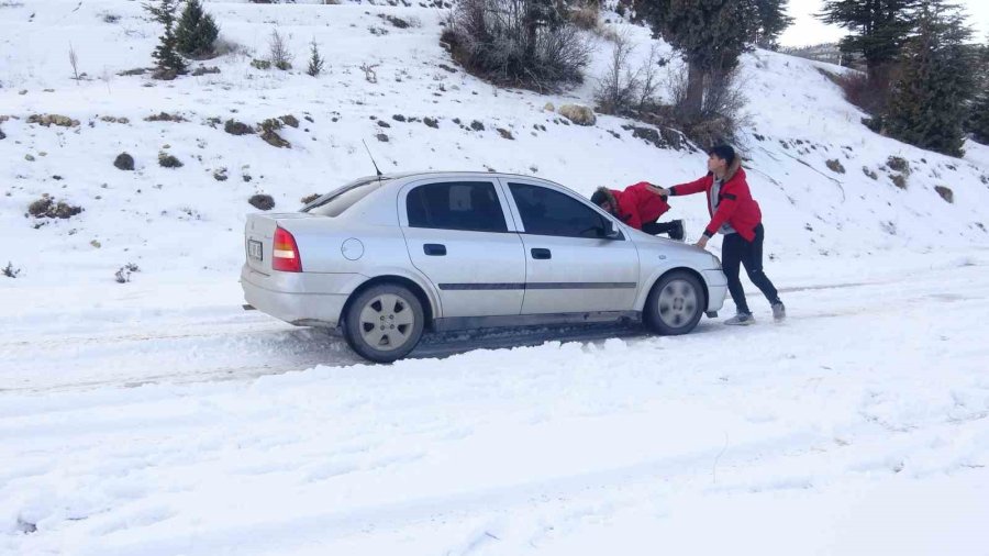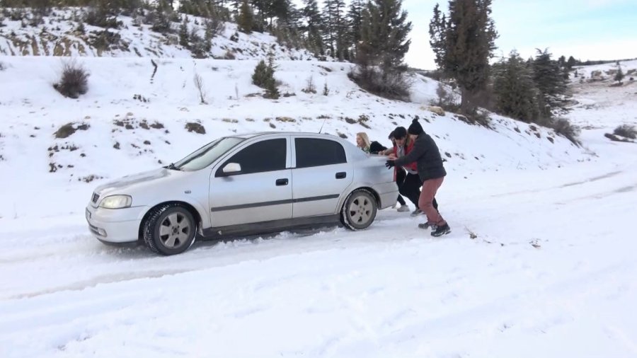 Yaylalar Karla Eşsiz Manzaraya Büründü, Kar Ve Buz Sürücülere Zor Anlar Yaşattı