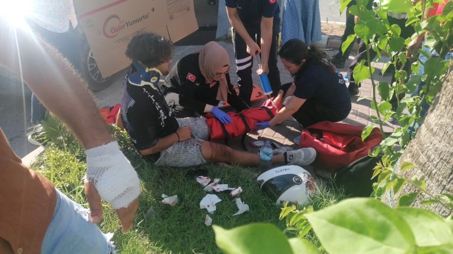 Antalya'nın Manavgat ilçesinde hafif ticari araç ile motosikletin çarpışması sonucu meydana gelen kazada motosiklet sürücüsü yaralandı.