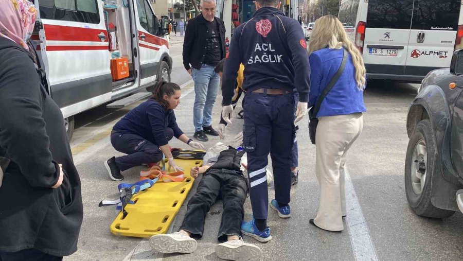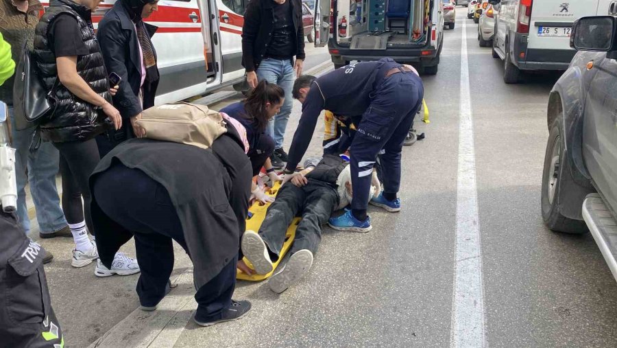 Olay, saat 14.40 sıralarında Atatürk Caddesi'nde meydana geldi. Edinilen bilgilere göre, genç bir erkek şahıs, idaresindeki 26 AJY 409 plakalı motosiklet ile seyir halindeyken karşıdan karşıya geçmeye çalışan bir kadın yayaya çarptı. Yaşanan çarpışma sonucunda yere düşen sürücü ve yaya yaralandı. Yerde yatan yaralılara ilk olarak çevredeki vatandaşlar müdahale etti.