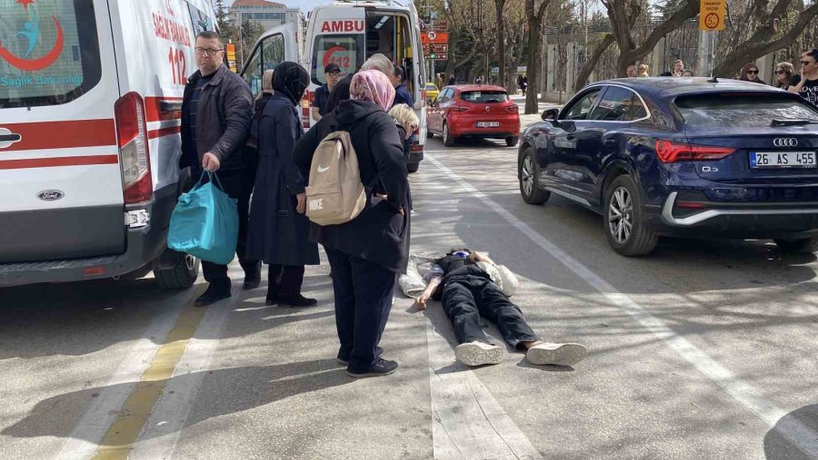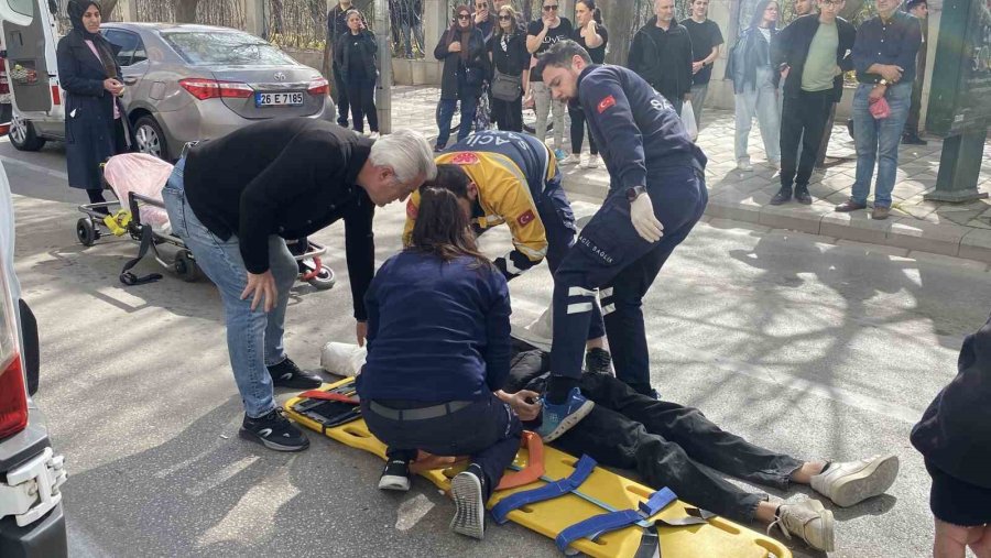 İhbar üzerine olay yerine 2 ambulans ve polis ekipleri sevk edildi. Sağlık ekipleri yerde yatan motosiklet sürücüsünü kontrol ettiği sırada çevreden geçen bir kadın telaşla yaklaşarak, "Bakabilir miyim? Yerde yatan genci oğluma benzettim" dedi. Yaralının oğlu olmadığını görüp rahatlayan kadın olay yerinden uzaklaştı. Yaralı sürücü Eskişehir Osmangazi Üniversitesi (ESOGÜ) Tıp Fakültesi Hastanesi'ne, yaya ise Yunus Emre Devlet Hastanesi'ne kaldırıldı. Birinci açık bir şekilde ambulansa bindirilen yaraların sağlık durumunun iyi olduğu öğrenildi.