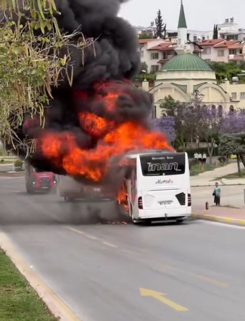 Mersin'de seyir halindeki bir yolcu otobüsü henüz bilinmeyen bir nedenle alev aldı.