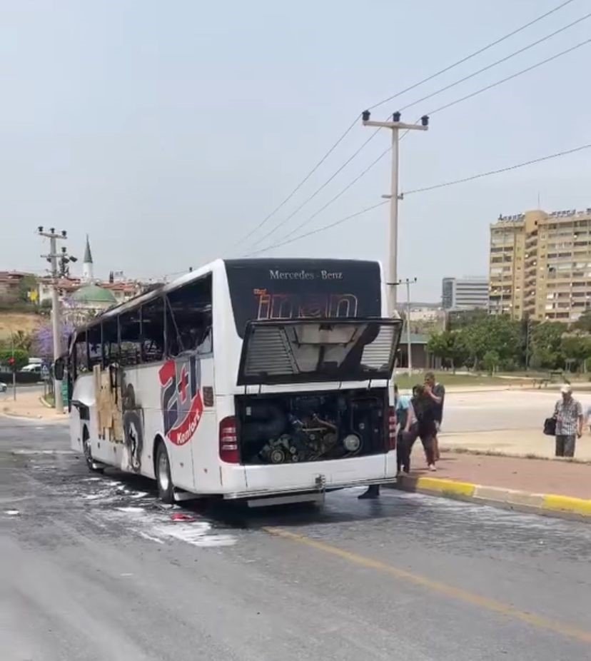 Mersin'de seyir halindeki bir yolcu otobüsü henüz bilinmeyen bir nedenle alev aldı. Kısa sürede alev topuna dönen otobüsten yolcular son anda tahliye edildi.