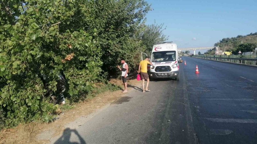 Antalya'nın Manavgat ilçesinde sürücüsünün direksiyon hakimiyetini kaybetmesi sonucu yoldan çıkan otomobil yol kenarında bulunan bahçeye girdi. Ağaçlara asılı vaziyette kalan otomobilde bulunan ve kaza nedeniyle şoka giren 3 kişi ambulansla hastaneye kaldırılarak tedavi altına alındı. Kaza sırasında bahçede bulunan bahçe sahibi kadın, kazalar nedeniyle can güvenliklerinin kalmadığını, bahçede çalışmaya korkar olduklarını söyledi.