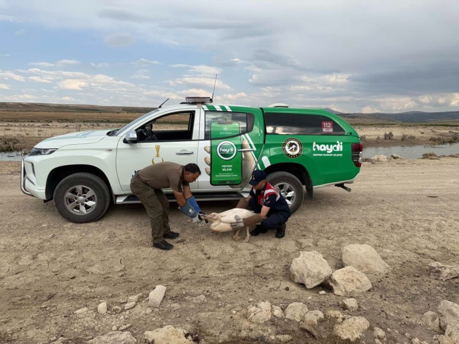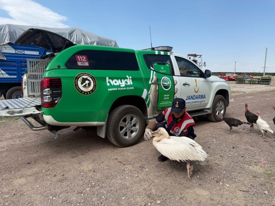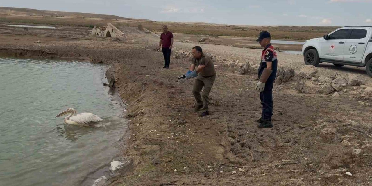 Karaman'da jandarma tarafından yorgun ve bitkin halde bulunan pelikan yapılan tedavisinin ardından yeniden doğal yaşam alanına bırakıldı.