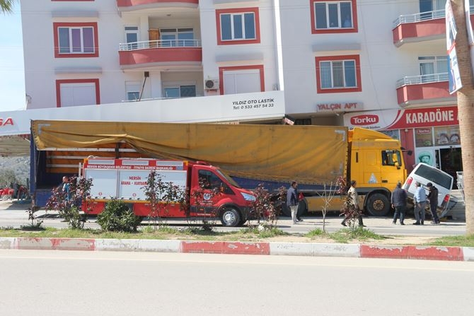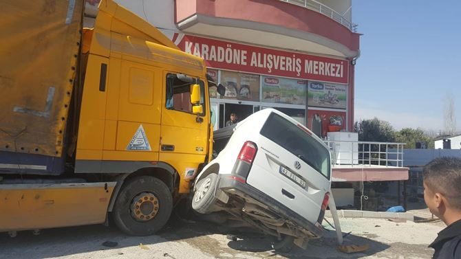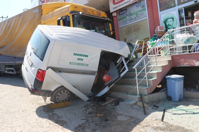 Yükü Boşaltılırken Hareket Eden Tır Ticari Araca Çarptı
