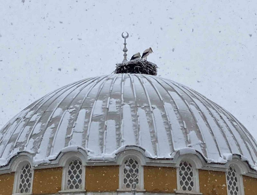 Yuvalarına Gelmeye Başlayan Leyleklere Kar Sürprizi